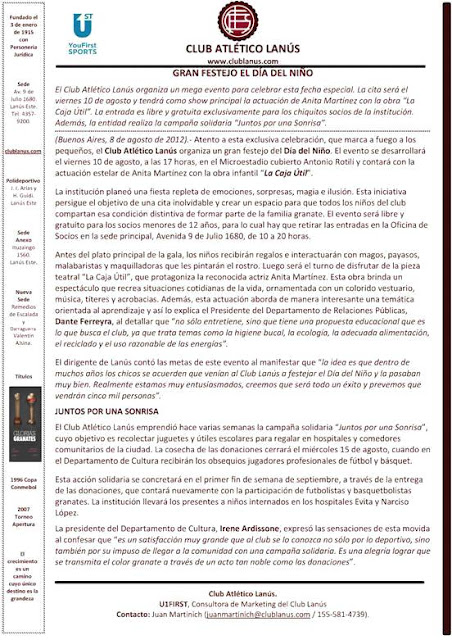El Club Lanús organiza un gran festejo del Día del Niño Publicadas por EL PERIODISTA DIGITAL DE LANUS agosto 08, 2012 Obtener vínculo Facebook X Pinterest Correo electrónico Otras apps Comentarios