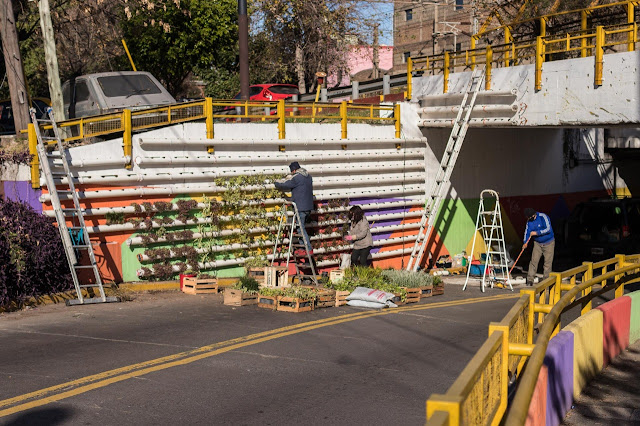 En el marco de las acciones implementadas por la Secretaría de Espacios y Servicios Públicos para avanzar en el proceso de restauración ambiental de la comuna, el área de Ambiente y Desarrollo Sustentable comenzó la instalación del primer Muro Verde o Jardín Vertical en el Paso Bajo Nivel de Castro Barros.